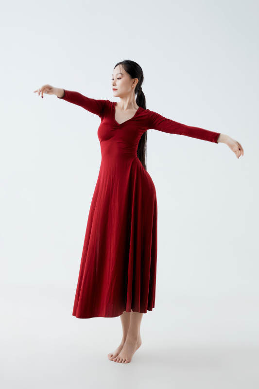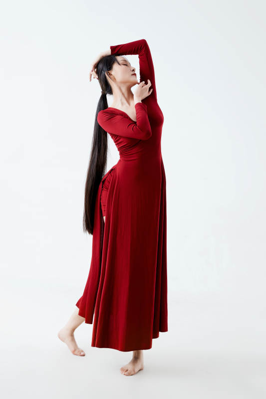 穿著紅色長(zhǎng)裙翩翩起舞的少女