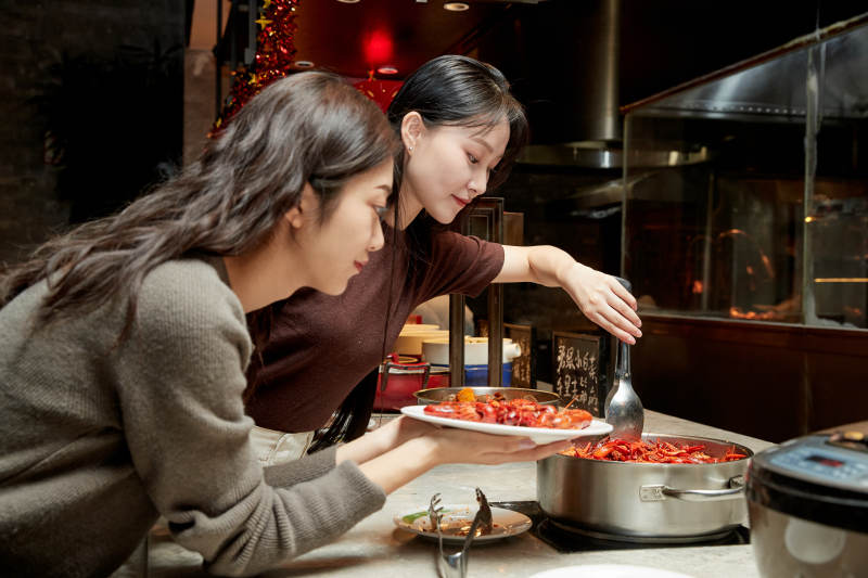 火鍋 鮮蝦面 面條 火焰 烹飪 廚房 電磁爐 食材 木桌 蔬菜 調(diào)味瓶