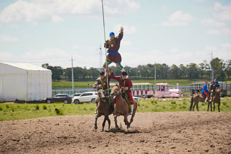河北省沽源縣庫倫淖爾景區(qū)的蒙古馬術表演