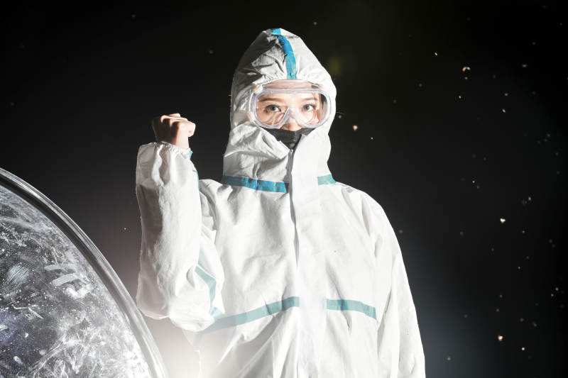 穿白色防護服佩戴護目鏡口罩的女性醫療人員