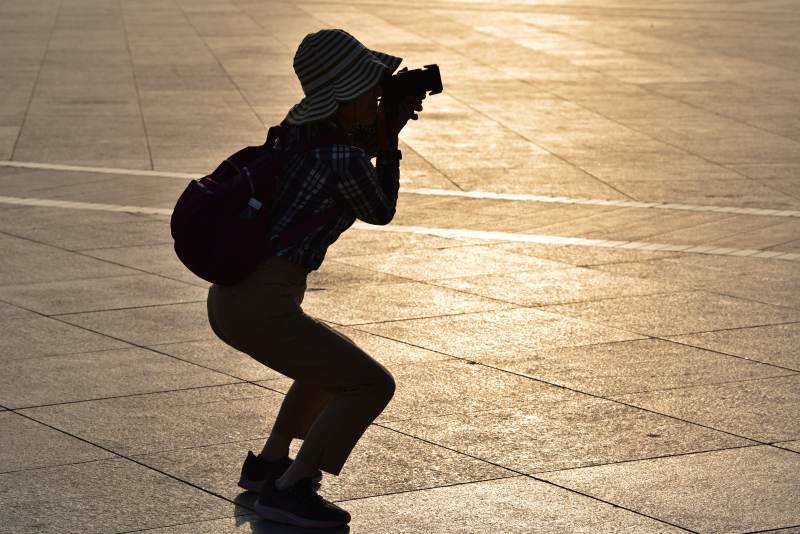 昆明池漢武大帝雕像廣場夕陽美景
