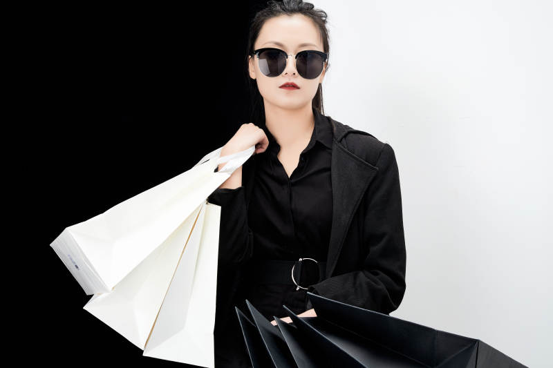 白色背景下手提購物袋時尚美麗的亞洲少女