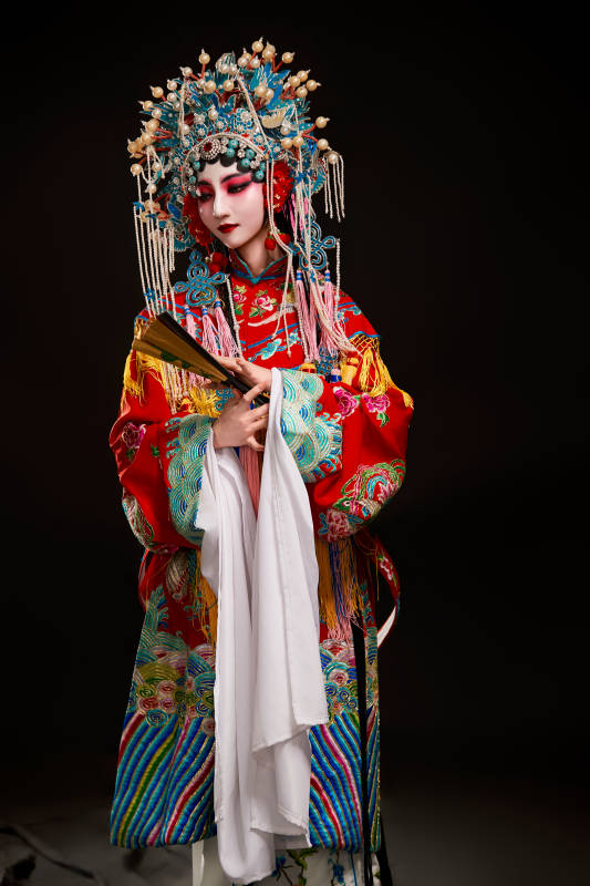 裝扮國(guó)粹京劇貴妃醉酒角色形象的中國(guó)少女