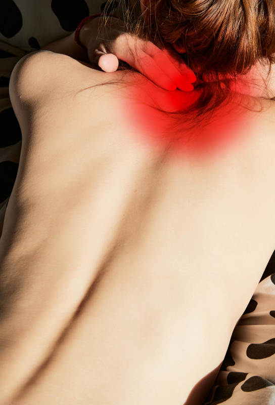 肩頸部位疼痛的亞洲年輕女性