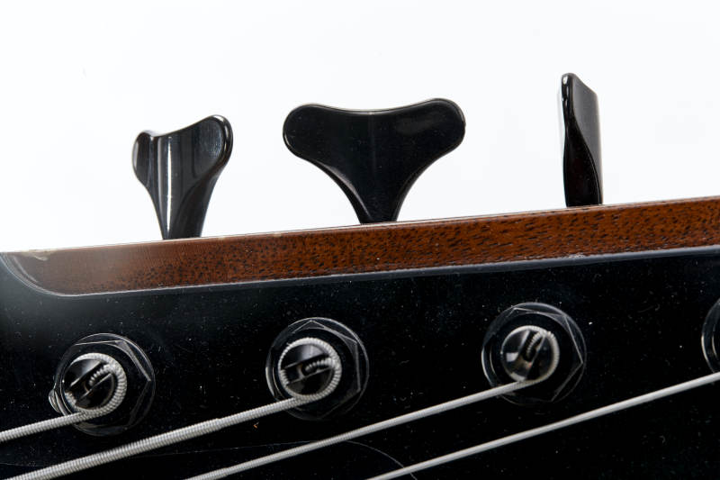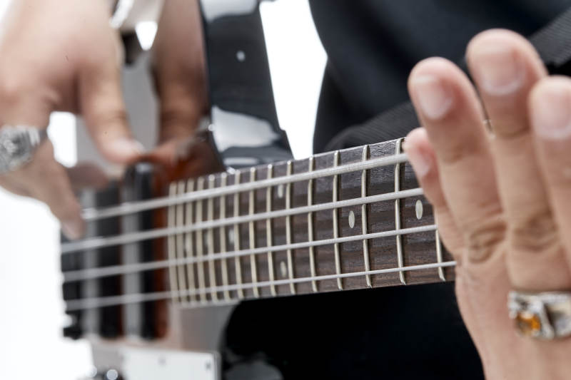 展示貝斯演奏技術技巧的亞洲男性樂手人像局部特寫