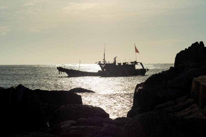 格陵蘭島 午夜巡航極晝 冰川間的紅色漁船