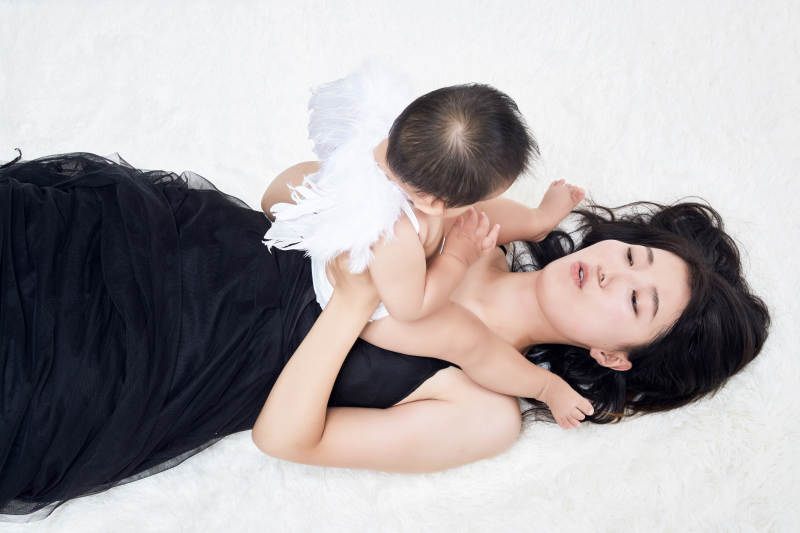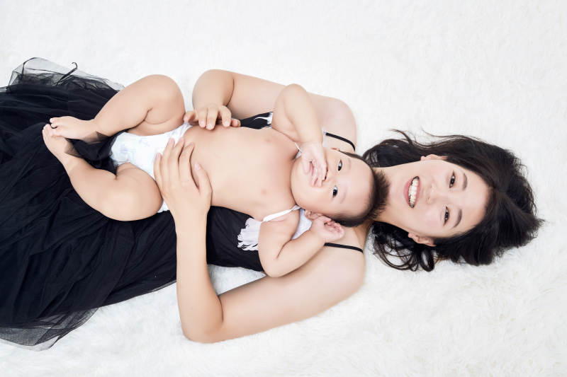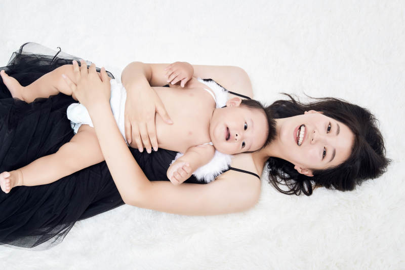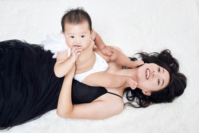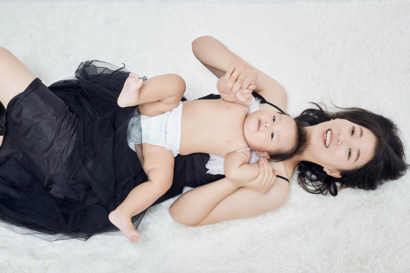可愛的寶寶在毛茸茸的墊子上玩耍