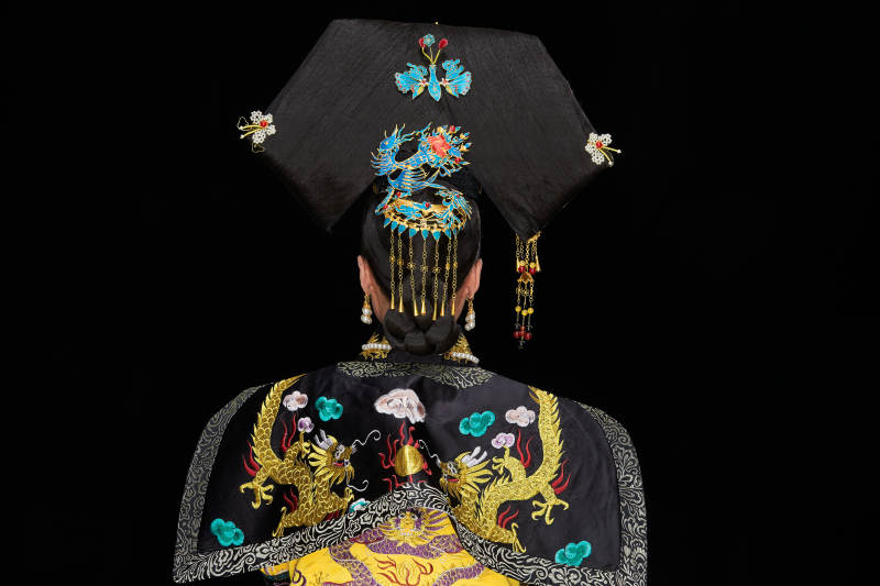 展示中國清朝宮廷服飾的亞洲女性