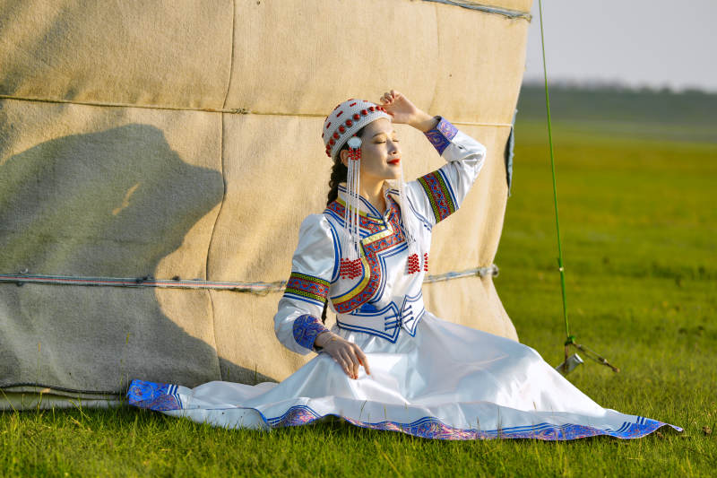 蒙古族服飾 弓箭 射箭 草原 湖水 傳統(tǒng)服裝 民族風(fēng)情 女性 戶外活動(dòng) 文化展示