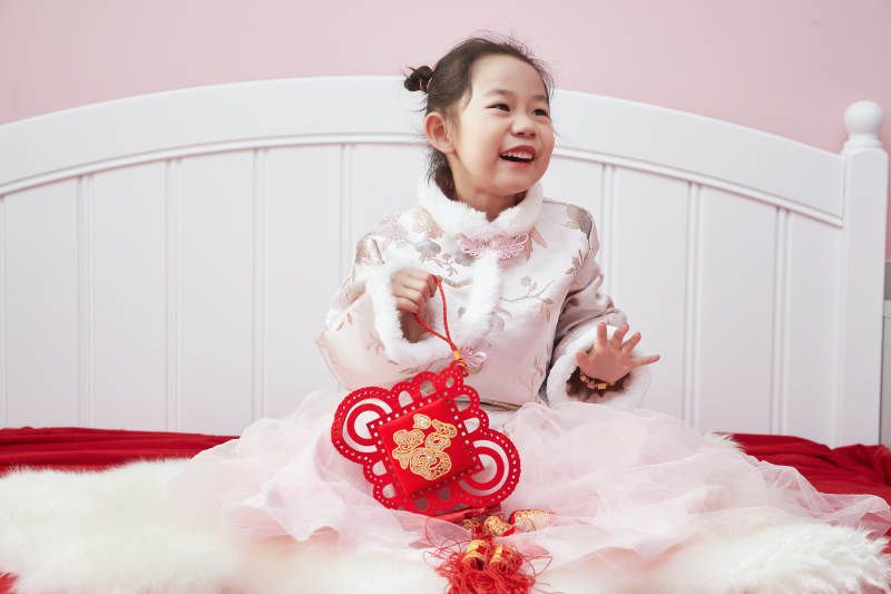 手持春聯(lián)身穿喜慶漢服的可愛少女