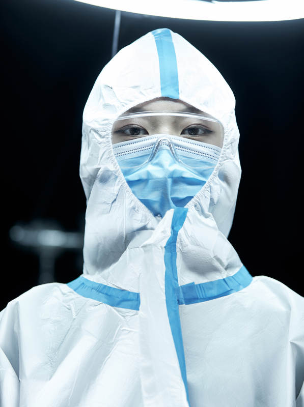 賽博朋克風(fēng)格穿防護(hù)服戴口罩護(hù)目鏡的少女