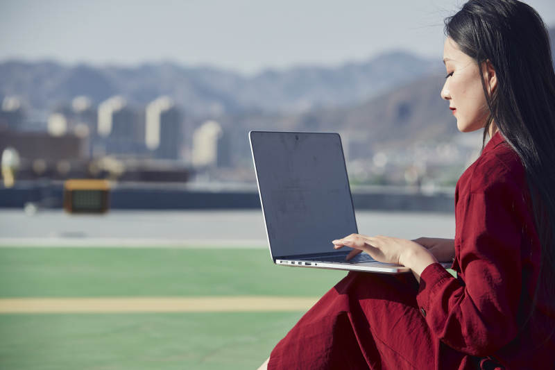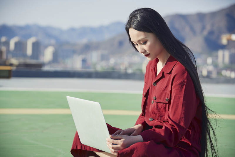 身穿西服拿著手機與文件夾的亞洲商務女士
