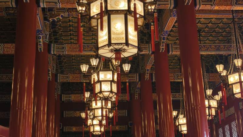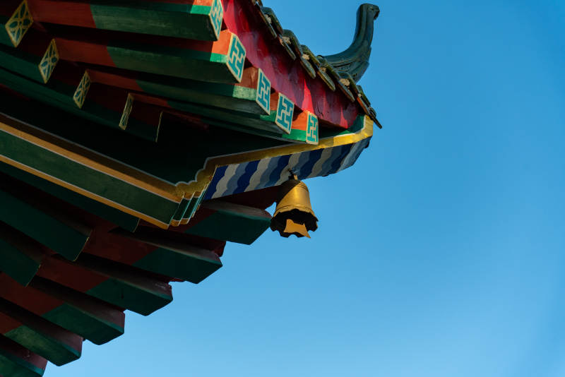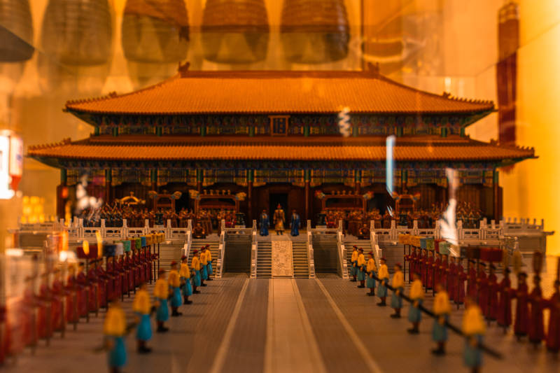 白色背景下穿著中國明朝明制漢服服飾的少女