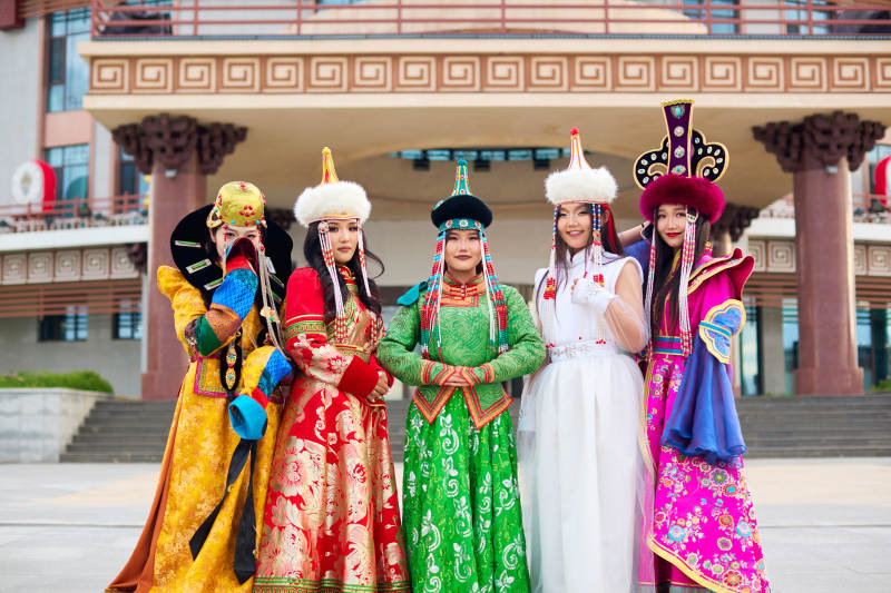 身穿蒙古族各部落傳統(tǒng)服飾的蒙古族姑娘