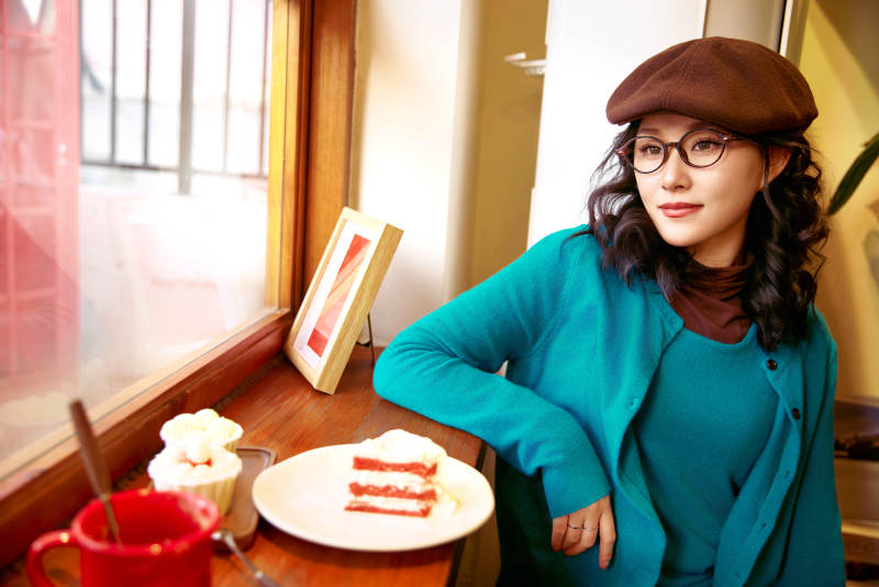冬日午后坐在咖啡店吃蛋糕喝咖啡的亞洲美女