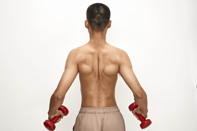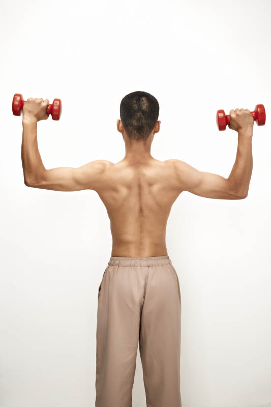 使用啞鈴進(jìn)行健身鍛煉的亞洲男性