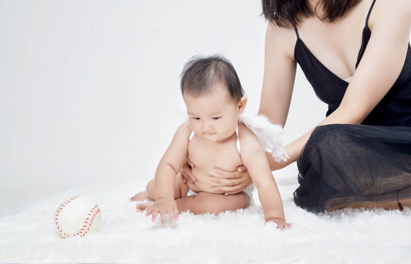 可愛的寶寶在毛茸茸的墊子上玩耍