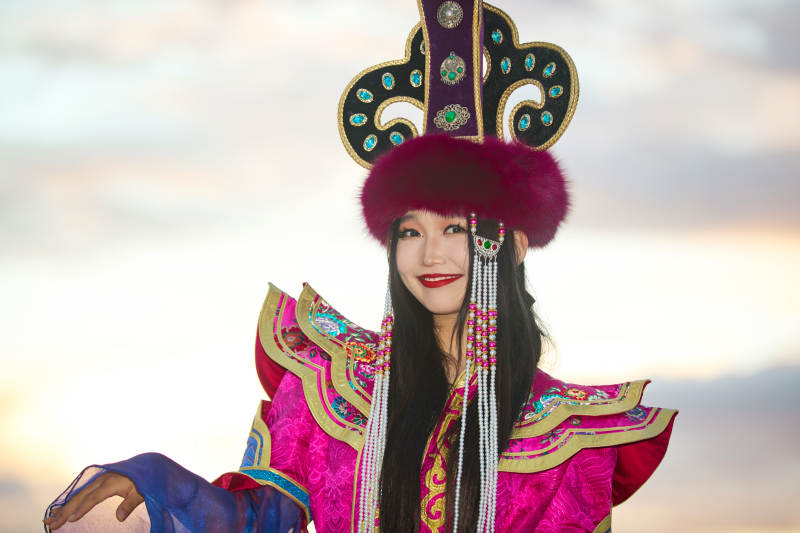穿著蒙古族服飾的亞洲青年女性