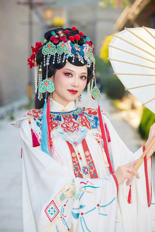 白色背景下國潮新派戲曲裝扮的亞洲美女