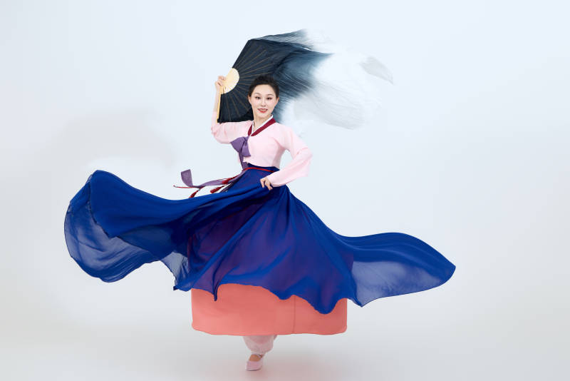 表演中國延邊朝鮮族傳統(tǒng)舞的美麗舞者