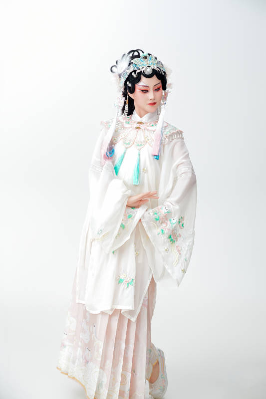 白色背景下國潮新派戲曲裝扮的亞洲美女