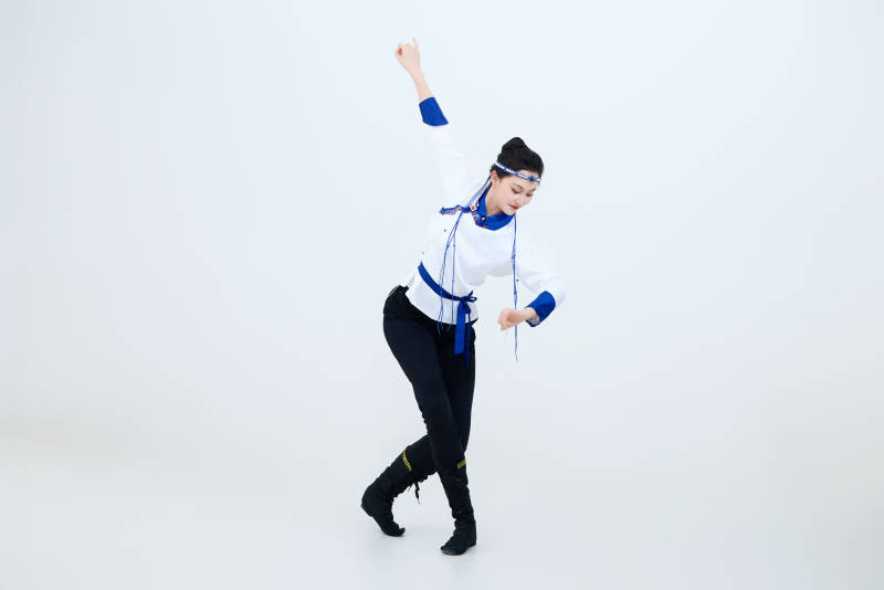 表演中國傳統(tǒng)民族舞蹈蒙古族舞的美麗舞者