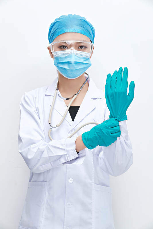 女性醫(yī)護人員展示規(guī)范的口罩正確佩戴方式