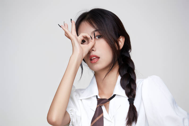 穿白色長(zhǎng)T血襯展示各種表情的長(zhǎng)發(fā)少女人像
