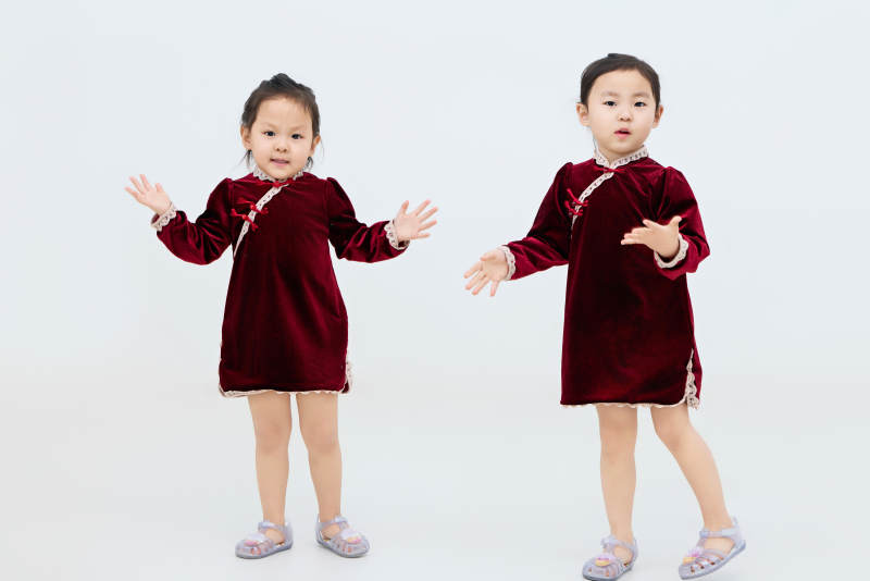 白色背景下可愛(ài)的中國(guó)小女孩
