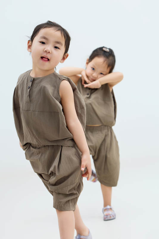 白色背景下頑皮可愛(ài)的雙胞胎小女孩
