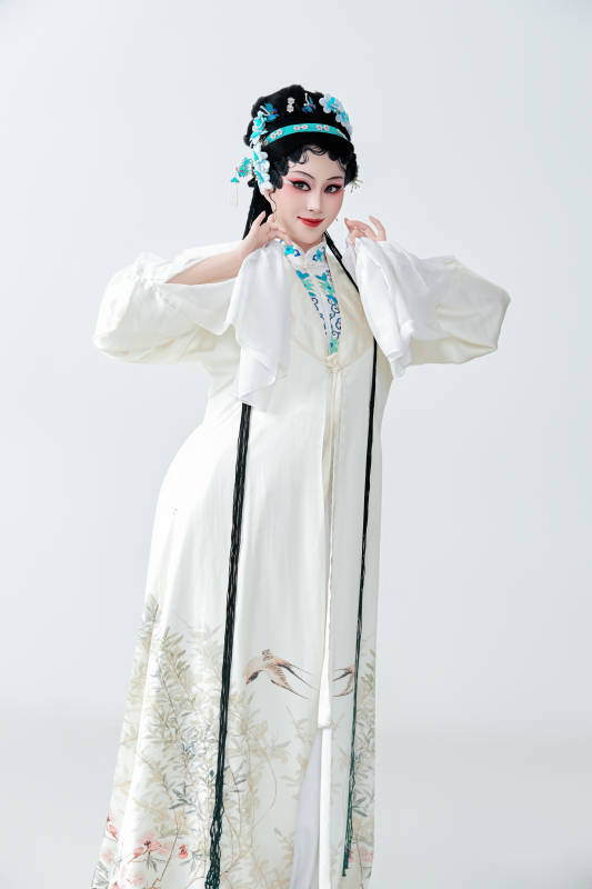 白色背景下傳統(tǒng)戲曲越劇裝扮的亞洲美女