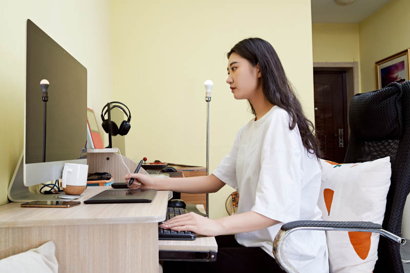 居家在電腦前創(chuàng)作插畫的年輕美女