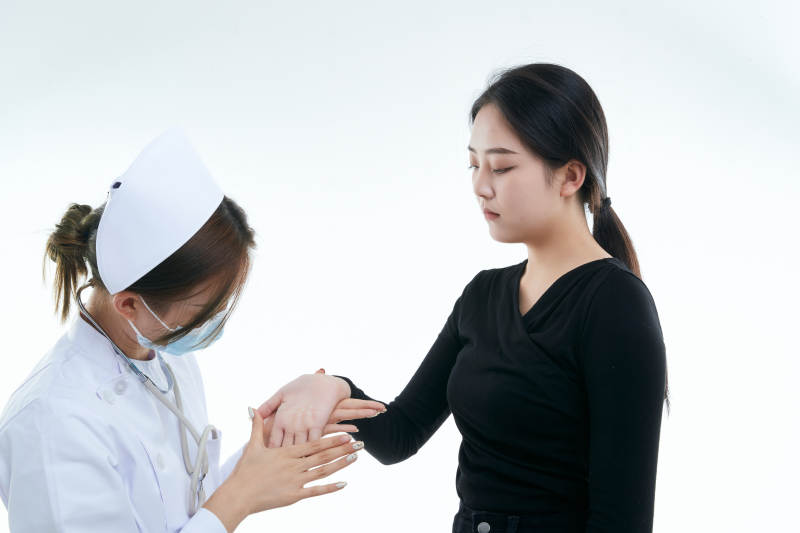佩戴聽診器的女性醫(yī)護(hù)人員為患者聽診檢查