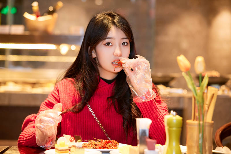 在酒店自助餐廳大吃特吃的可愛(ài)少女