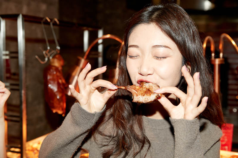 在酒店自助餐廳大吃特吃的亞洲可愛(ài)閨蜜少女