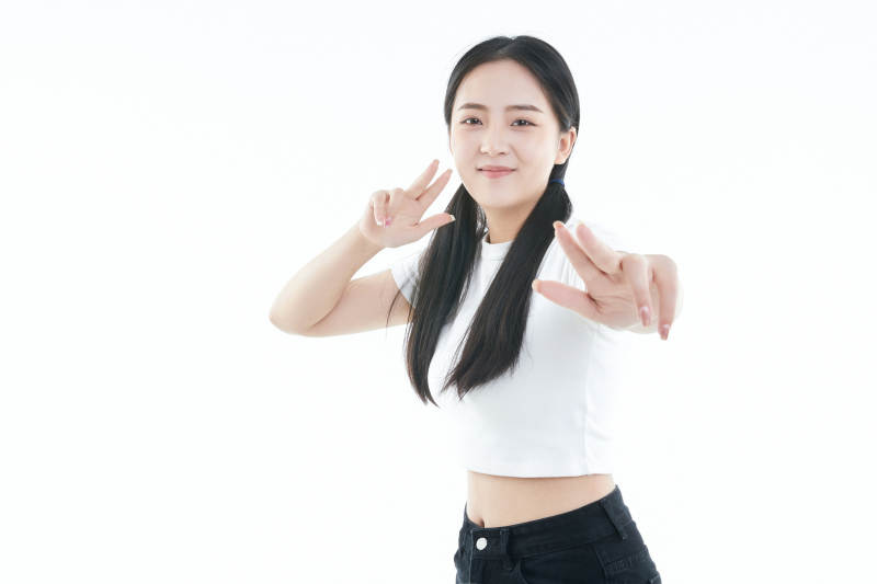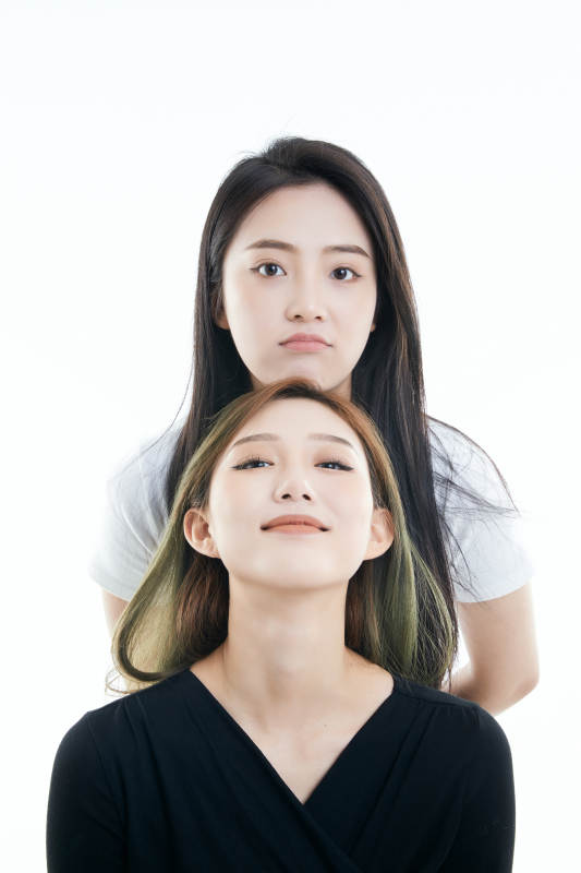影棚拍攝白色背景的可愛(ài)閨蜜少女