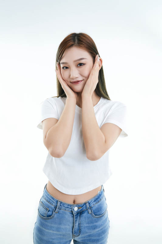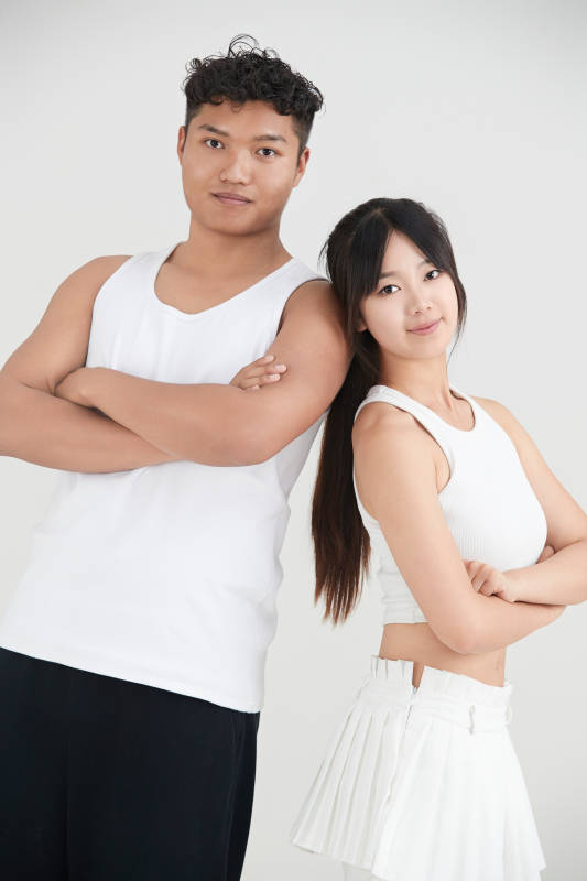 白色背景下嬉戲歡樂(lè)的亞洲情侶