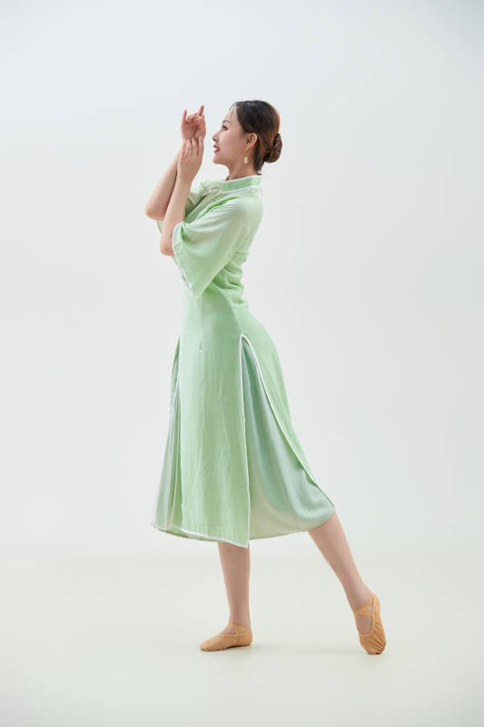 穿著中式旗袍翩翩舞蹈的亞洲少女舞者