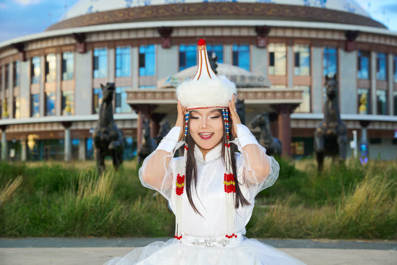 穿著蒙古族達(dá)爾罕部落傳統(tǒng)服飾的蒙族姑娘