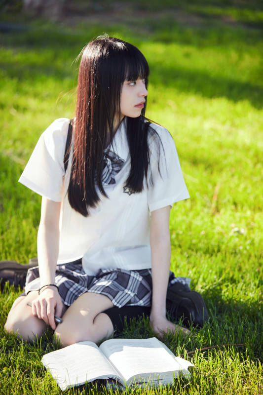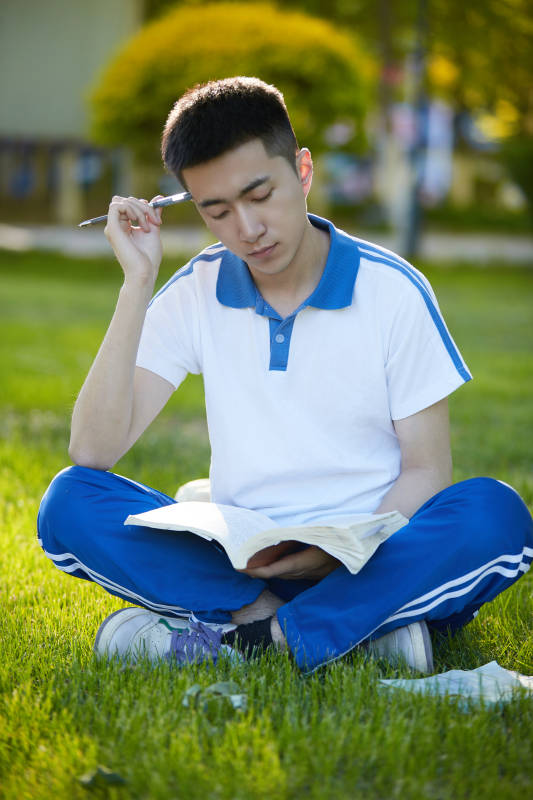 校園戶外草坪上備戰(zhàn)高考的高中生