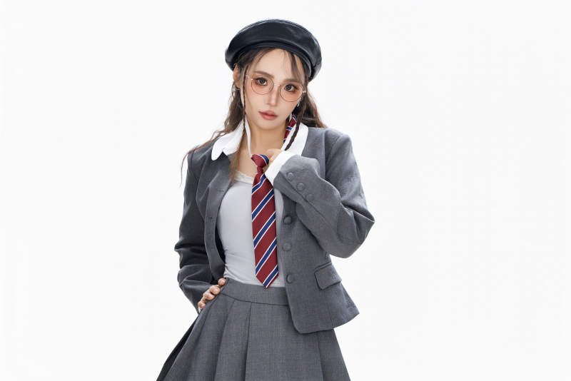 影棚拍攝身穿制服裝扮時(shí)尚的亞洲美女