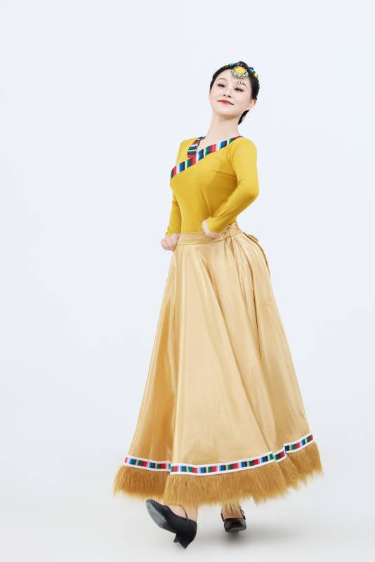 表演中國西藏藏族傳統(tǒng)鍋莊舞的美麗舞者